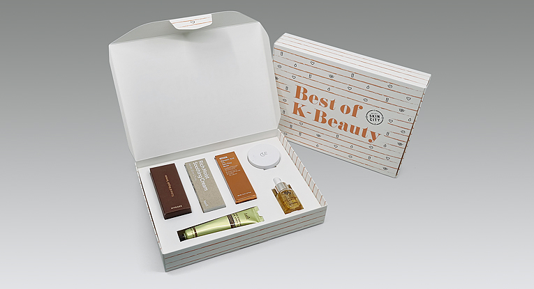 Box, Digital figurskärning, Digital stansning, Förpackningskonstruktion, GLOWiD, Invercote Creato, Julkit, Kosmetika, Skincity